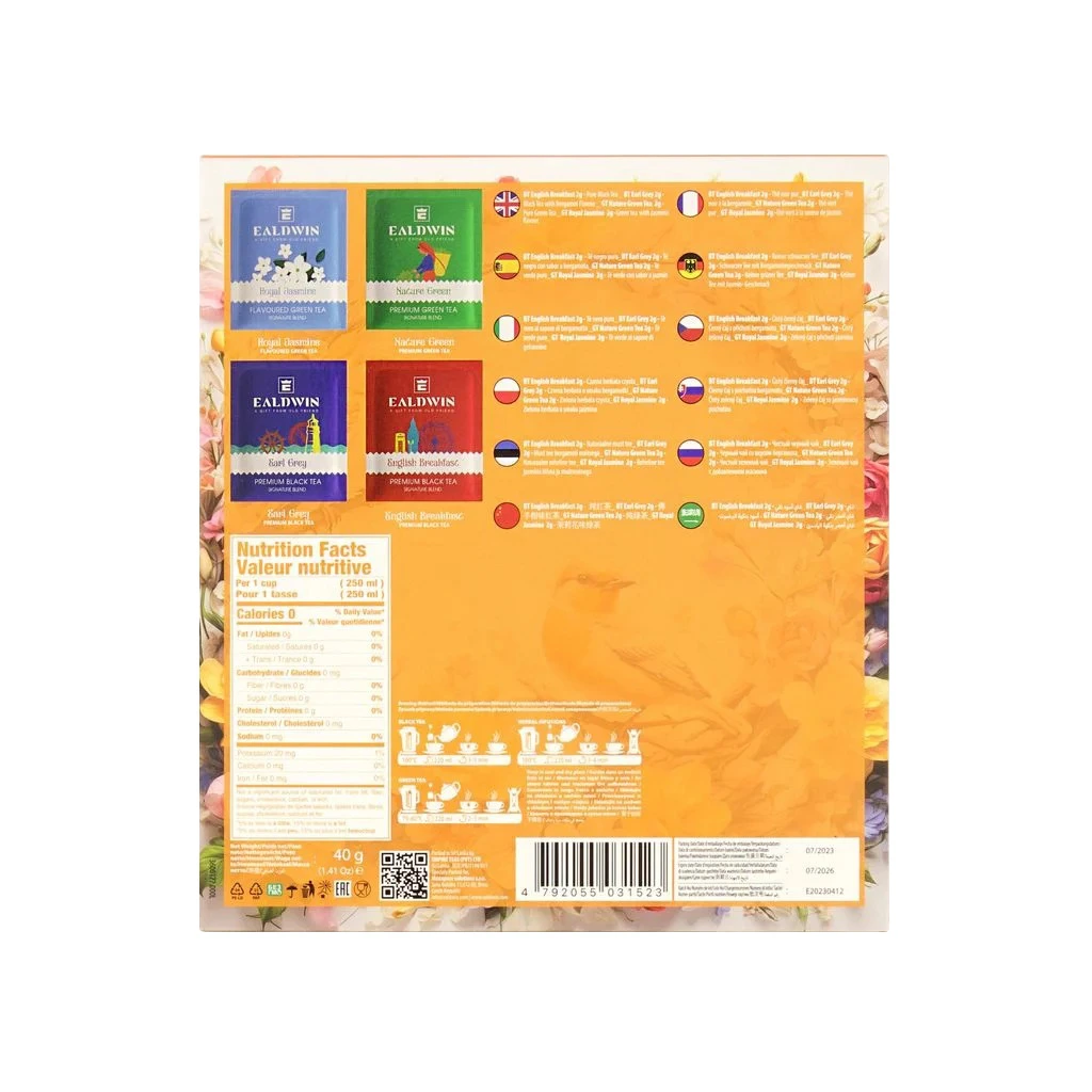 Lemon & Ginger- roheline tee, sidruni ja ingevi lõhna ja maitseained. Imperial Matcha- roheline tee. Masala Chai- must tee, ingveritükid, kardemoni tükid, nelgi tükid. Tropical Punch- must tee troopilise lõhna ja maitseained.