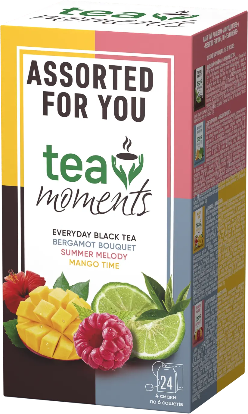 Koostisosad: Everyday Black Tea - must lehetee, Bergamot Bouquet - must lehetee, apelsiniõie kroonlehed, rukkilille kroonlehed, apelsinikoor, lõhna- ja maitseained "Apelsin" ja "Bergamot". "Summer Melody"- Sudaani roosi (hibisk) hibisk-kroonlehed, tükeldatud tükid: kuivatatud õun. "Mango Time"-Roheline tee, mango tükid, apelsiniõie kroonlehed, roosi kroonlehed, mango lõhna ja maitseaine.